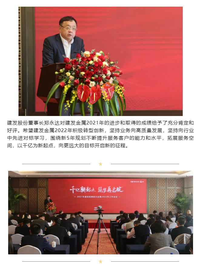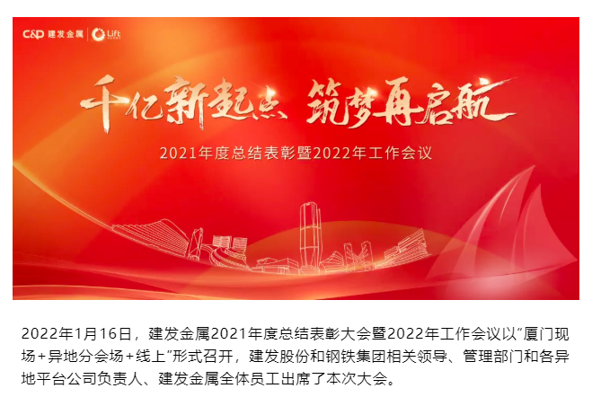1000億!千億新起點(diǎn),筑夢再起航——建發(fā)金屬召開2021年度總結(jié)表彰大會暨2022年工作會議